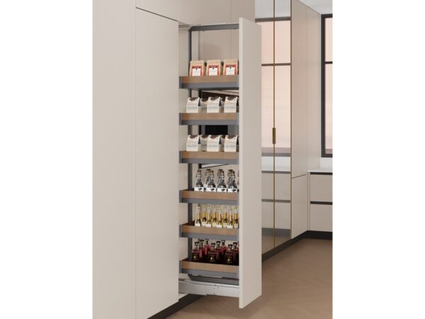 La alacena extraíble de 6 pisos marca Trebol modelo ACE007 es una solución ideal para organizar espacios en la cocina o despensa. Fabricada con materiales de alta calidad, cuenta con un sistema de extracción suave y fácil de usar. Sus seis niveles permiten una distribución eficiente de los productos, aprovechando al máximo el espacio vertical. Con medidas de 13-25/32 x 18-29/32 x (70-7/8 a 82-11/16) pulgadas, es adaptable a diferentes tamaños de armarios. Su diseño robusto garantiza durabilidad, mientras que el acabado de madera le da un toque elegante y moderno. Este producto es perfecto para quienes buscan optimizar su almacenamiento y mantener todo organizado de manera práctica.