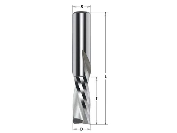 • Espiral descendente que produce cortes limpios y sin astillas en la parte superior de los materiales.