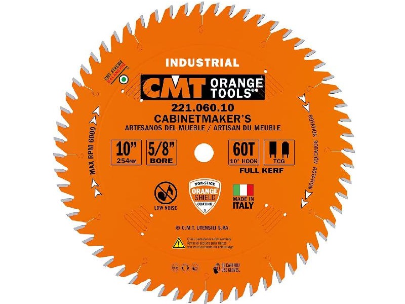 CMT 221.060.10 Industrial Cabinetshop Saw Blade, 10-Inch x 60 Teeth TCG Grind with 5/8-Inch Bore, PTFE Coating