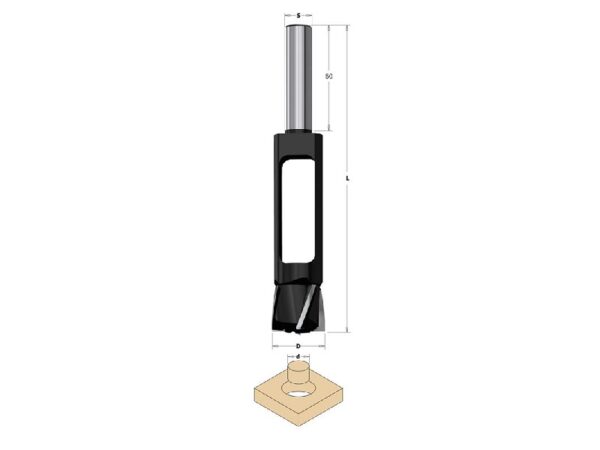 El cortador de tapones CMT 529.095.31 está diseñado para cortar tapones de madera limpios y precisos para ocultar tornillos, clavos u otros orificios de fijación. Con un diámetro menor de 3/8 de pulgada y un diámetro de 49/64 de pulgada, este cortador crea tapones perfectamente dimensionados para un acabado profesional.