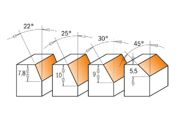 • Ángulo de corte de 22 grados