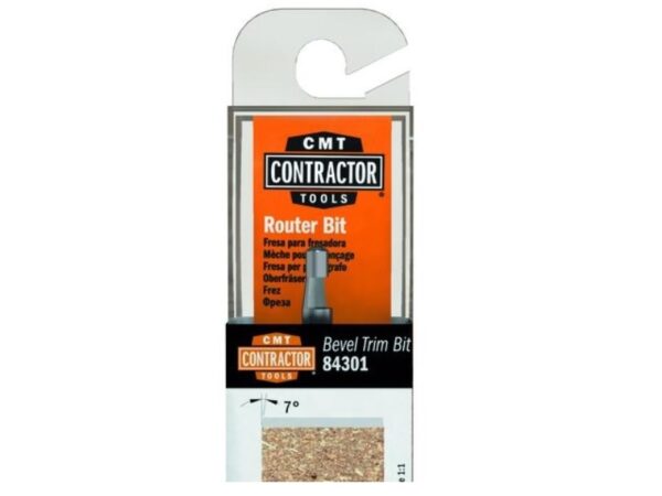 CMT 84301 Contractor Solid Carbide Laminate Trimmer Bit, 1/4-inch Diameter, 7° Bevel, 1/4-Inch Shank