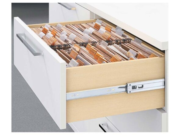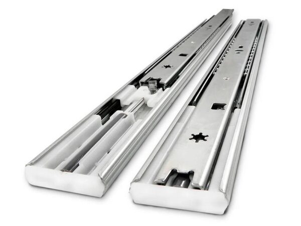 Esta corredera de extensión completa de 18 pulgadas con cierre suave ofrece un deslizamiento suave y silencioso para gavetas y bandejas. El mecanismo de cierre suave asegura que los gavetas se cierren de manera controlada y sin golpes.