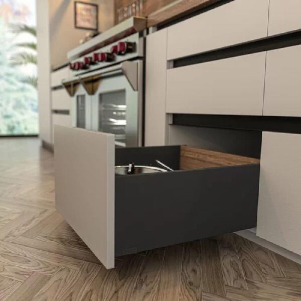 Esta corredera Trebol Slim Box presenta una extensión completa y cierre suave, en un elegante color gris antracita. Con dimensiones de 18 pulgadas de largo x 6.89 pulgadas (175 mm) de alto, es ideal para diversas aplicaciones de muebles.
