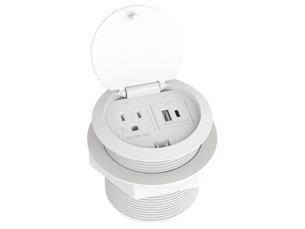 Estación para conexión eléctrica elevable color blanco. 1 toma de corriente, 1 conector USB-A y 1 USB-C – 822.09.401