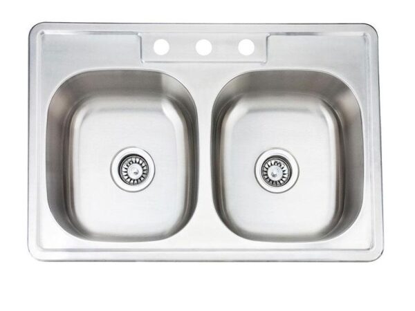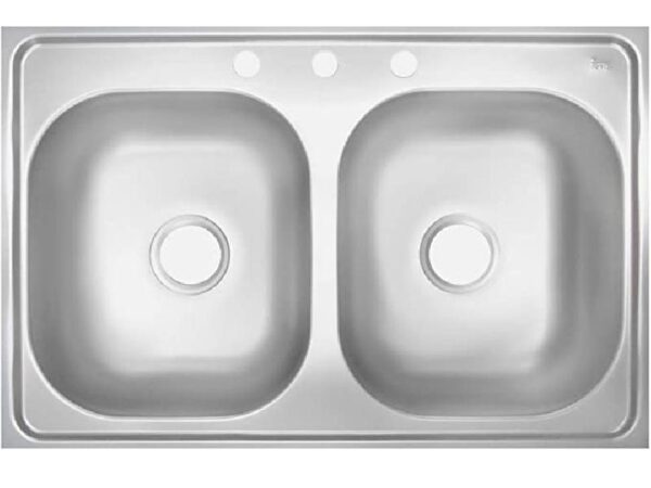 Fregadero doble sobrepuesto pulido 6 in 33 x 22 x 6 in
