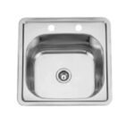 Este fregadero sencillo de barra sobrepuesto de acero inoxidable, con dimensiones de 15 x 15 pulgadas, es ideal para espacios pequeños. Su diseño compacto y duradero lo convierte en una opción práctica para bares o áreas de preparación.