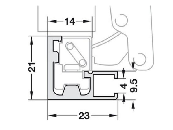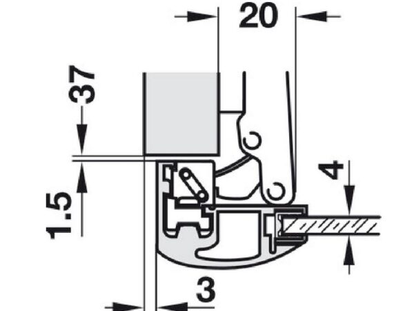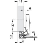Gozne para perfil de aluminio con placa Hafele (563.25.940 + 316.51.504) – por unidad