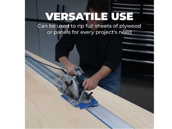 La guía de corte de 100 in con carrito para sierra circular Kreg® Accu-Cut™ XL – KMA3700 es una herramienta robusta y precisa para realizar cortes rectos y precisos en grandes piezas de material. Diseñada para adaptarse a sierras circulares, esta guía proporciona una plataforma estable y deslizante para cortar materiales de hasta 100 pulgadas de longitud con facilidad y precisión. Sus características incluyen: