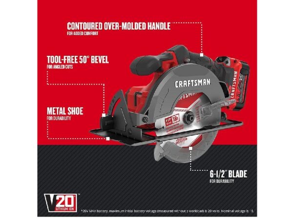Kit de sierra circular inalámbrica Craftsman V20, 6-1/2 in, batería y cargador incluidos – CMCS500M1