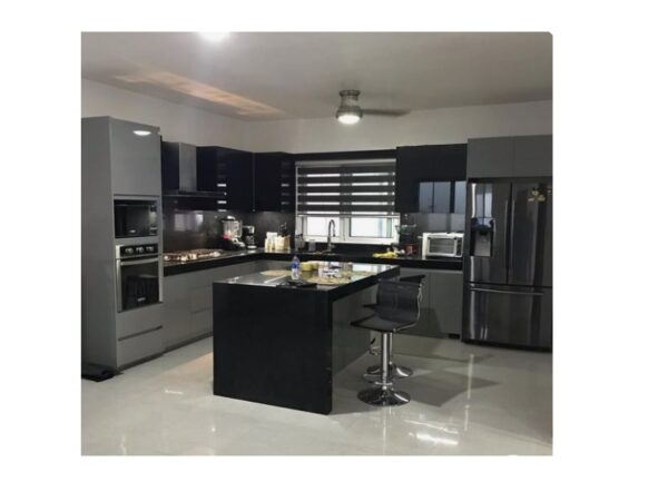 El laminado Greenlam 401-09 en color negro metálico es una opción elegante y duradera para proyectos de diseño interior. Con dimensiones estándar de 4×8 pies y film protector, ofrece resistencia y protección contra daños.