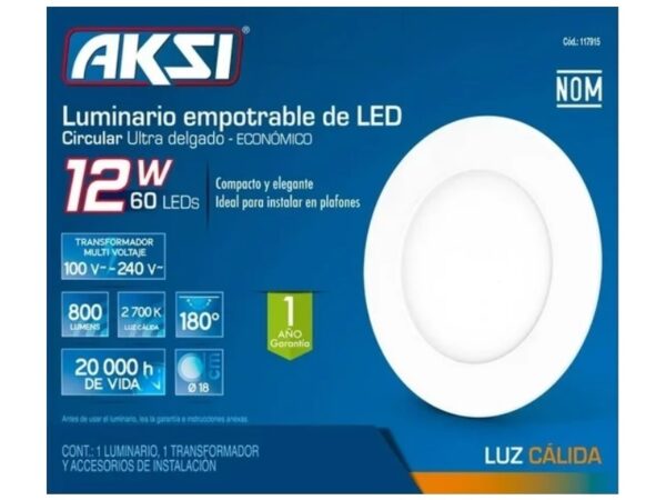 Lámpara empotrable circular LED, línea eco, 12W, luz cálida 2700K marca AKSI – 117915