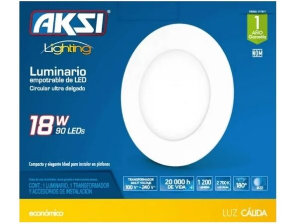 Lámpara empotrable circular LED, línea eco, 18W, luz cálida 2700K marca AKSI – 117917