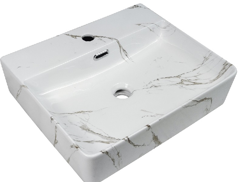 Lavamanos sobrepuesto rectangular marmoleado blanco NATY-LAV14 – 19.7 x 16.5 x 5.1 in