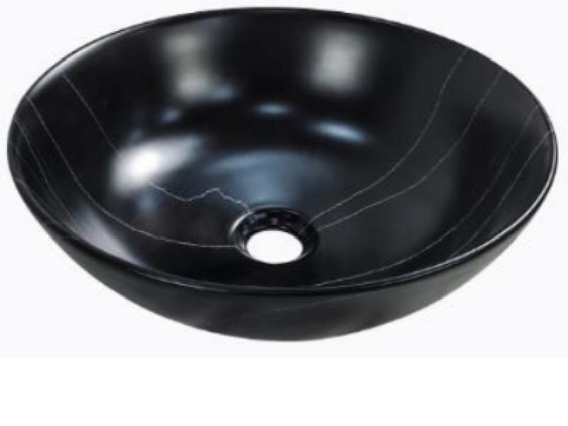 Lavamanos sobrepuesto redondo marmoleado negro matte NATY-LAV19 – 15.7 x 15.7 x 5.3 in