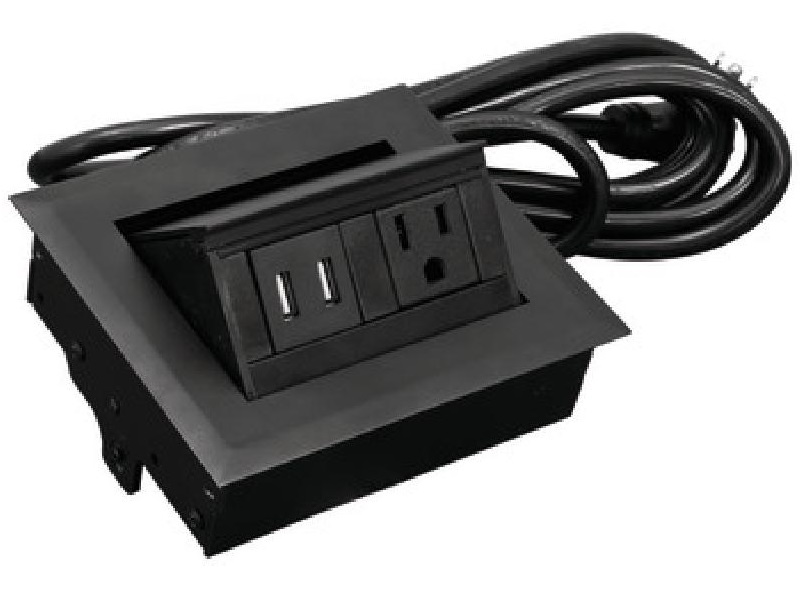 Multiplug empotrable negro eléctrico y de datos. 1 toma de corriente y 2 puertos USB – 822.09.330