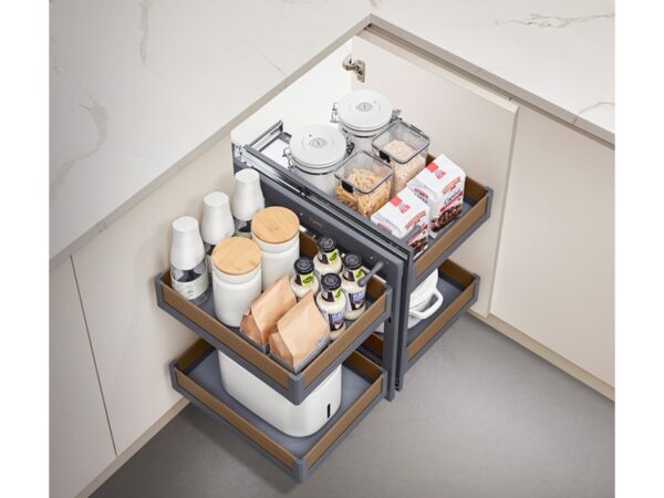 Organizador cuadrado de esquina magic corner de 2 pisos, cierre lento, que sale con la puerta, apertura total marca Trebol – ACF027 – 25-19/32 x 18-29/32 x 22-1/16 in