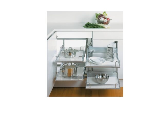 El organizador extraíble de esquina con apertura hacia la derecha, modelo ML077R, es una solución ingeniosa para maximizar el espacio de almacenamiento en tu cocina. Diseñado para esquinas, este organizador permite acceder fácilmente a los utensilios y accesorios incluso en los rincones más difíciles de alcanzar. Con su mecanismo de extracción suave y silenciosa, facilita el acceso y la organización de tus elementos de cocina. Su diseño compacto y funcional lo convierte en una adición imprescindible para cocinas de cualquier tamaño. Fabricado con materiales resistentes y duraderos, garantiza una larga vida útil y un uso sin problemas.