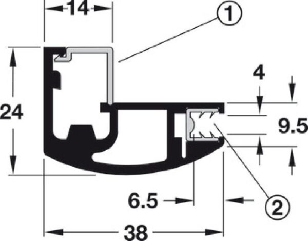Perfil de marco de puerta de aluminio ovalado plateado de 1-1/2 in x 8.2 ft Hafele – 563.27.902