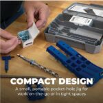 La plantilla para pocket holes Kreg® – KPHJ320 es una herramienta innovadora que simplifica la creación de uniones fuertes y precisas en proyectos de carpintería. Con esta plantilla, puede perforar agujeros de bolsillo de manera rápida y fácil, permitiendo un ensamblaje robusto y duradero de piezas de madera. Ideal para constructores, carpinteros y aficionados por igual, esta plantilla ofrece una solución versátil y confiable para una variedad de aplicaciones.