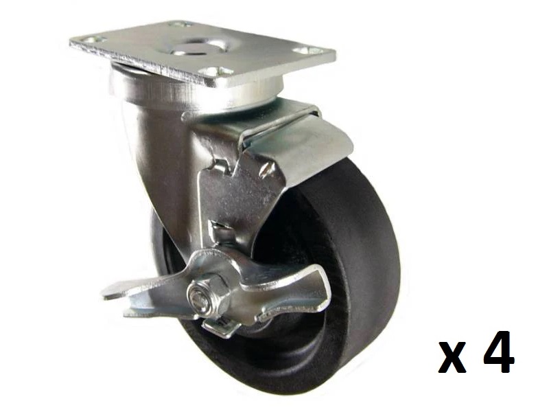 Ruedas giratorias con freno 1-1/2 in, paquete de 4