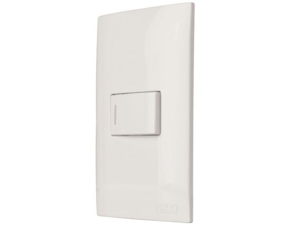 Este switch sencillo blanco con tapa de la marca AKSI proporciona una solución elegante y funcional para controlar la iluminación en tu hogar u oficina. Con su diseño moderno y práctico, es ideal para cualquier ambiente.