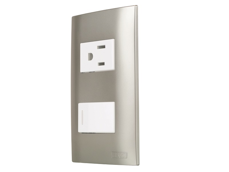 Switch sencillo plata con plug y tapa – AKSI – 124831