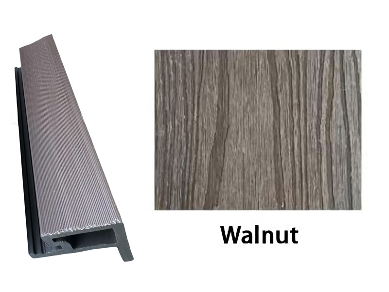 Terminación de esquina machihembrado para panel WPC ranurado decorativo color Walnut (brown oscuro) de 9.5 ft de largo