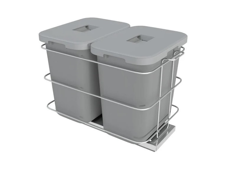 Zafacón doble 30 L (2×15 L) con tapa y riel cierre lento montaje bajo color gris HSO460-40