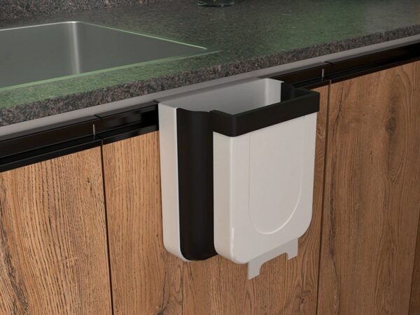 Este zafacón de plástico blanco plegable está diseñado específicamente para puertas de gabinetes, ofreciendo una solución conveniente y discreta para la gestión de residuos en la cocina o en espacios de almacenamiento. Con una capacidad de 6 litros, es ideal para residuos de uso diario.